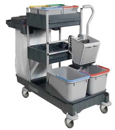 Der Reinigungswagen ProCar 7G ist optimal für die Unterhaltsreinigung großer Flächen und Objekte geeignet. Diese Modelle sind mit einer robusten Universalpresse mit zwei großen Moppeimern, einer Abfalleinheit (2 x 70 / 1 x 120 Liter) und farbcodierten Eimern für die Oberflächenreinigung ausgestattet. Die großen Ablagefächer ermöglichen die Mitnahme von zahlreichen Versorgungsmaterialien, Reinigungsmitteln und Tüchern. Die Universalpresse ermöglicht ein Dosieren der Feuchtigkeit des eingesetzten Moppbezuges.